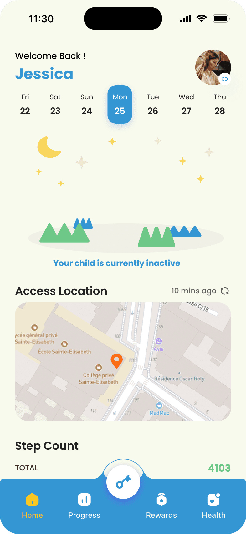 The Habikey dashboard gives you a real-time view of your child’s day. From their current location and overall health status to a quick summary of their past three days and what’s ahead, everything is designed to keep you in the loop.