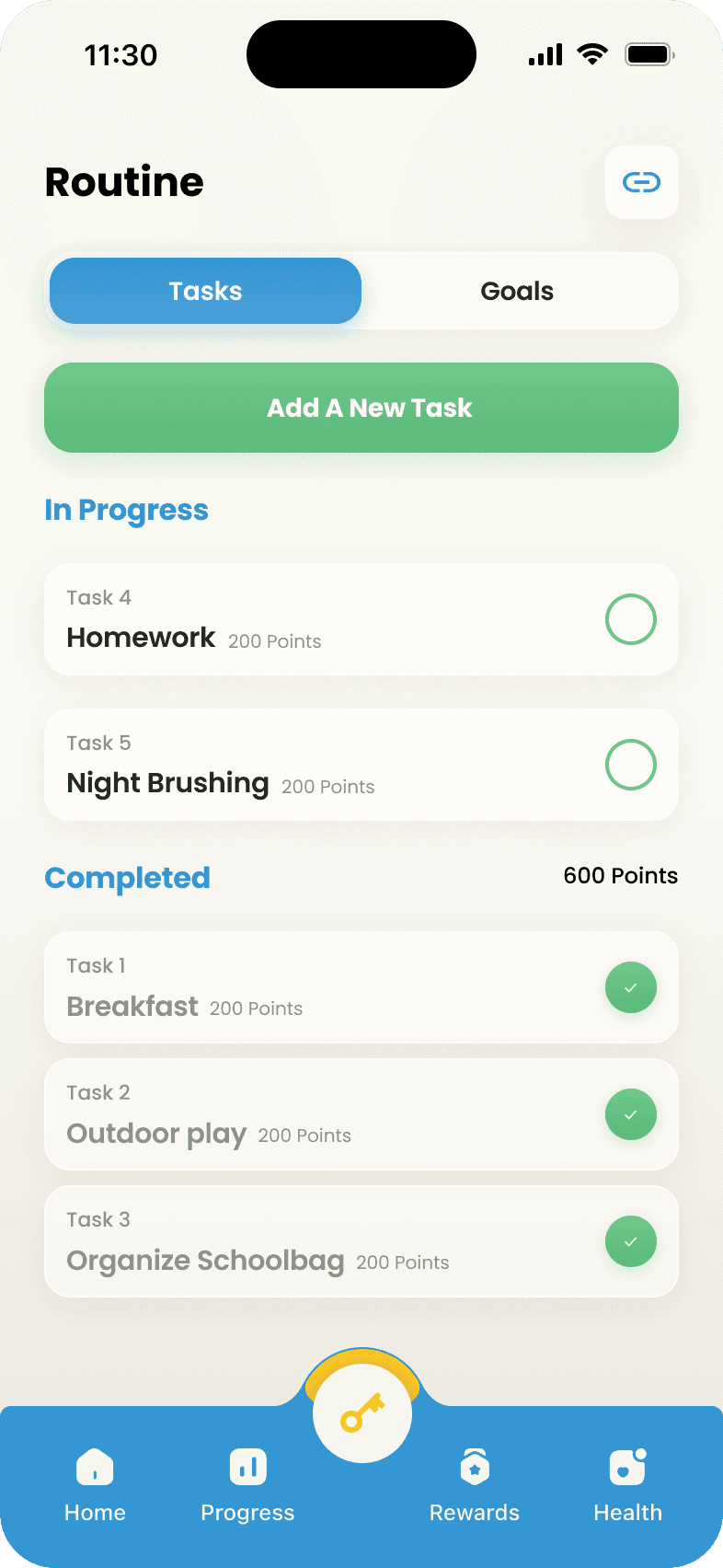 you can assign daily routines and tasks tailored to your child’s age and lifestyle. Set weekly or monthly goals, attach point values to each task, and keep your child motivated by unlocking rewards as points add up. It’s a simple and fun way to build structure, responsibility, and excitement.