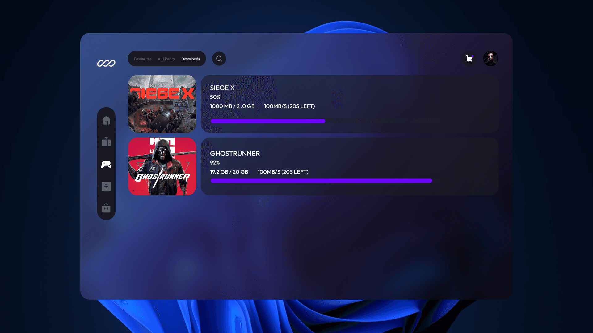 Users can browse and manage all owned games in one place. Clean grid layout with instant access to launch or continue playing.